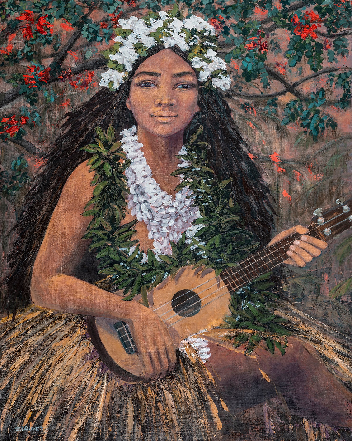 She spent most of her summers in San Diego California in her mother’s hometown. As a teenager, she fell in love with Maui, during her first trip in ‘96 to the valley Isle. Since then she has been coming back regularly for extended periods of time, painting Hawaiian landscapes, portraits and daily life . Of Special interest is her fascination with Hawaiian Women and capturing them in a natural beautiful manner.