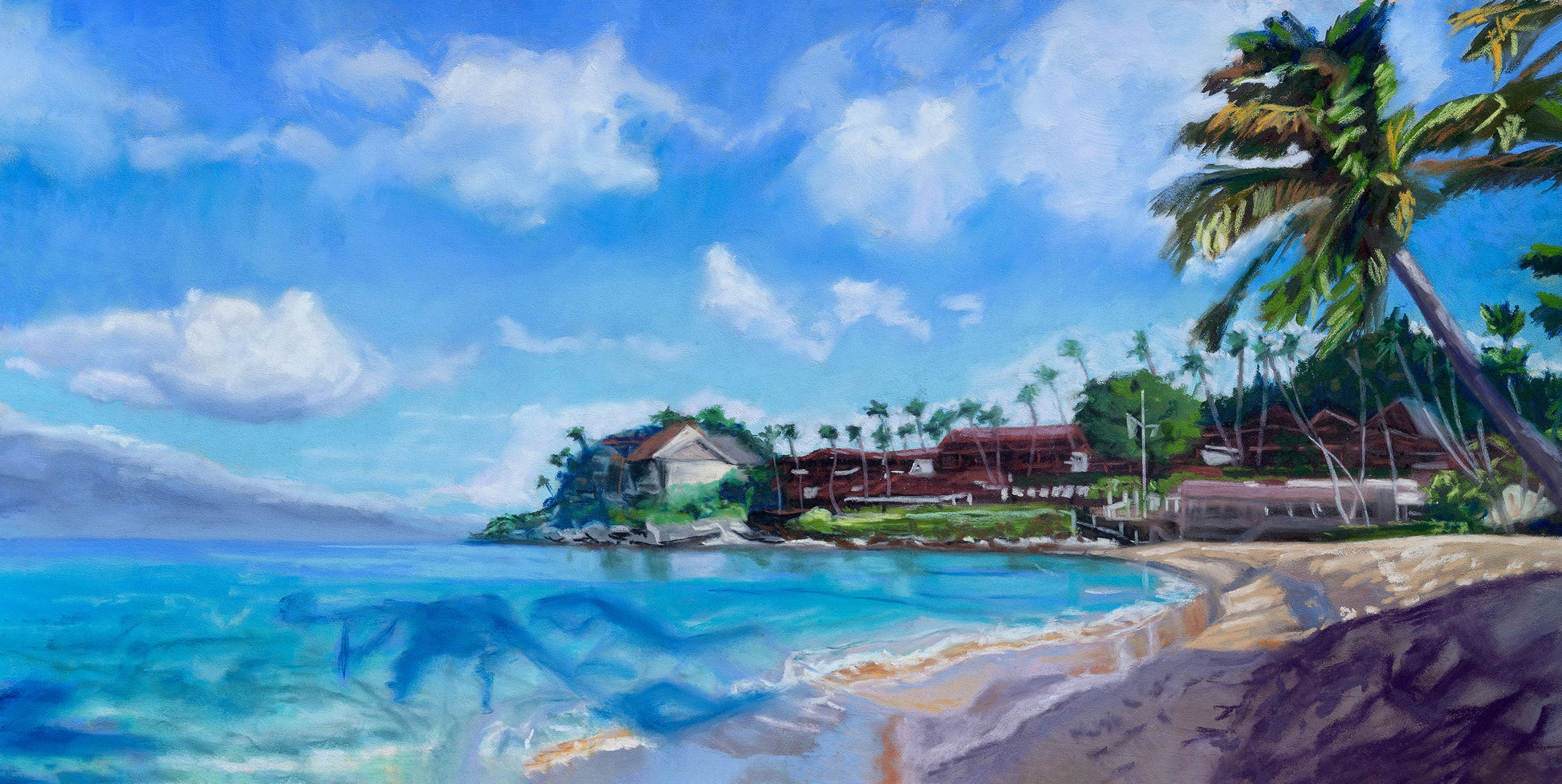 The poet Mary Oliver’s advice on instructions for living a life: “Pay attention. Be astonished. Tell about it.” This is what Laurie Miller believes she was called to do as an artist, to look for the magic in a sunset, a wave crashing, a surfer ready to find the perfect set; to fully experience and be wowed, and then to tell those stories through her artwork. The “why” in her paintings is to reconnect people to their dreams and cherished memories. Adept with oils and pastels she uses them to awaken the senses, and evoke the sentiments of how people want to feel or how they felt about being in a particular place, such as the beautiful island of Maui. What are the colors and textures they envision, what gives them that sense of awe and wonder? Her focus is on the simplicity of her surroundings to artistically express the essence of the moment.