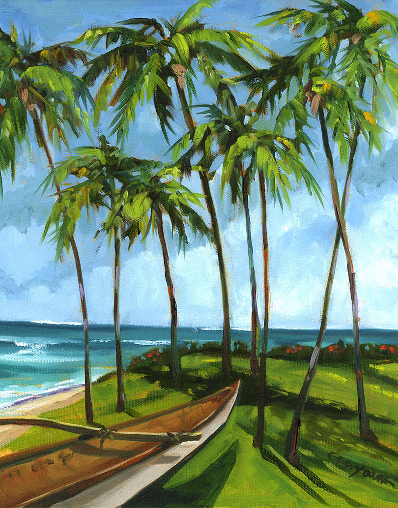 Local artist George Young began studying art and painting under the guidance of his father who was also an artist and teacher. A native of Newport Beach, California, Mr. Young has resided near coastal locations for most of his life and that proximity has cultivated a love of lush ocean landscapes and warm tropical climates. His beautiful oil paintings are primarily images of Maui’s paradise. He skillfully blends vivid color and shadow, and he genuinely captures the languid beauty that his subjects inspire..