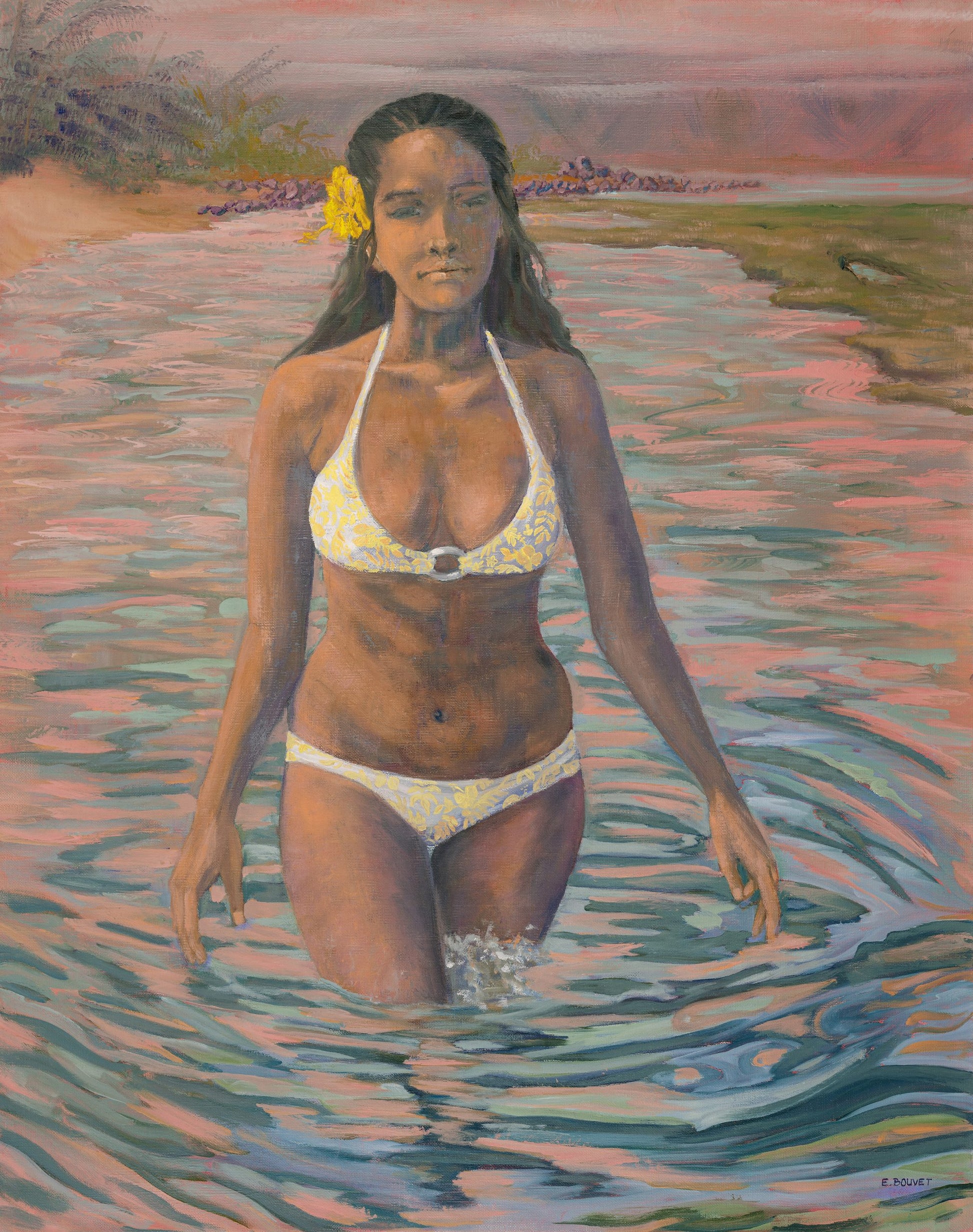 She spent most of her summers in San Diego California in her mother’s hometown. As a teenager, she fell in love with Maui, during her first trip in ‘96 to the valley Isle. Since then she has been coming back regularly for extended periods of time, painting Hawaiian landscapes, portraits and daily life . Of Special interest is her fascination with Hawaiian Women and capturing them in a natural beautiful manner.
