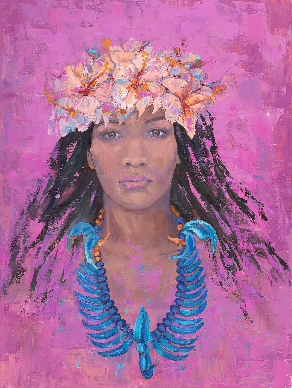 She spent most of her summers in San Diego California in her mother’s hometown. As a teenager, she fell in love with Maui, during her first trip in ‘96 to the valley Isle. Since then she has been coming back regularly for extended periods of time, painting Hawaiian landscapes, portraits and daily life . Of Special interest is her fascination with Hawaiian Women and capturing them in a natural beautiful manner.
