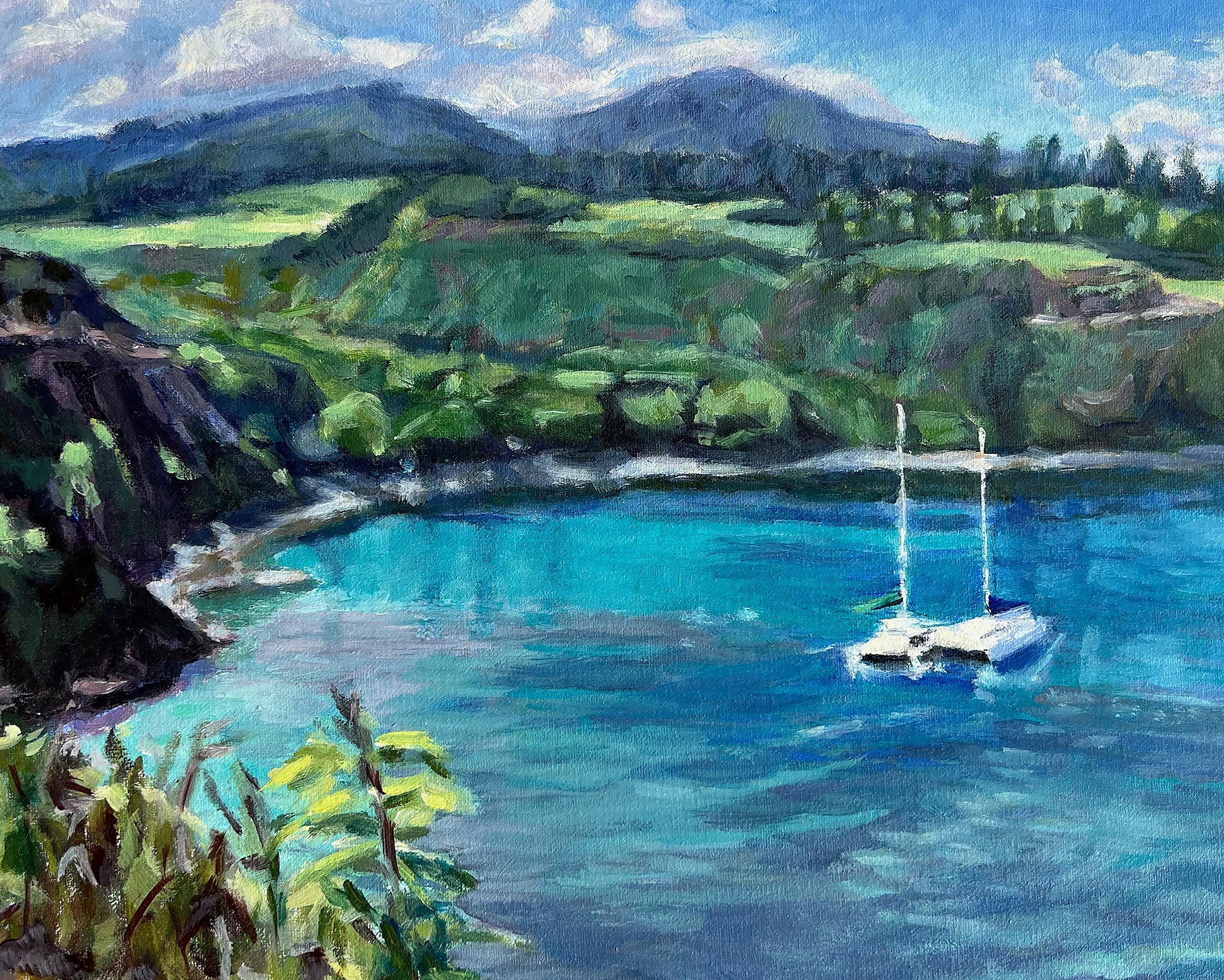 The poet Mary Oliver’s advice on instructions for living a life: “Pay attention. Be astonished. Tell about it.” This is what Laurie Miller believes she was called to do as an artist, to look for the magic in a sunset, a wave crashing, a surfer ready to find the perfect set; to fully experience and be wowed, and then to tell those stories through her artwork. The “why” in her paintings is to reconnect people to their dreams and cherished memories. Adept with oils and pastels she uses them to awaken the senses, and evoke the sentiments of how people want to feel or how they felt about being in a particular place, such as the beautiful island of Maui. What are the colors and textures they envision, what gives them that sense of awe and wonder? Her focus is on the simplicity of her surroundings to artistically express the essence of the moment.