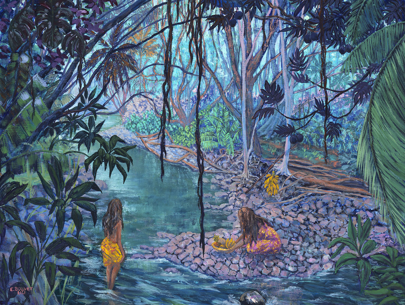 She spent most of her summers in San Diego California in her mother’s hometown. As a teenager, she fell in love with Maui, during her first trip in ‘96 to the valley Isle. Since then she has been coming back regularly for extended periods of time, painting Hawaiian landscapes, portraits and daily life . Of Special interest is her fascination with Hawaiian Women and capturing them in a natural beautiful manner.