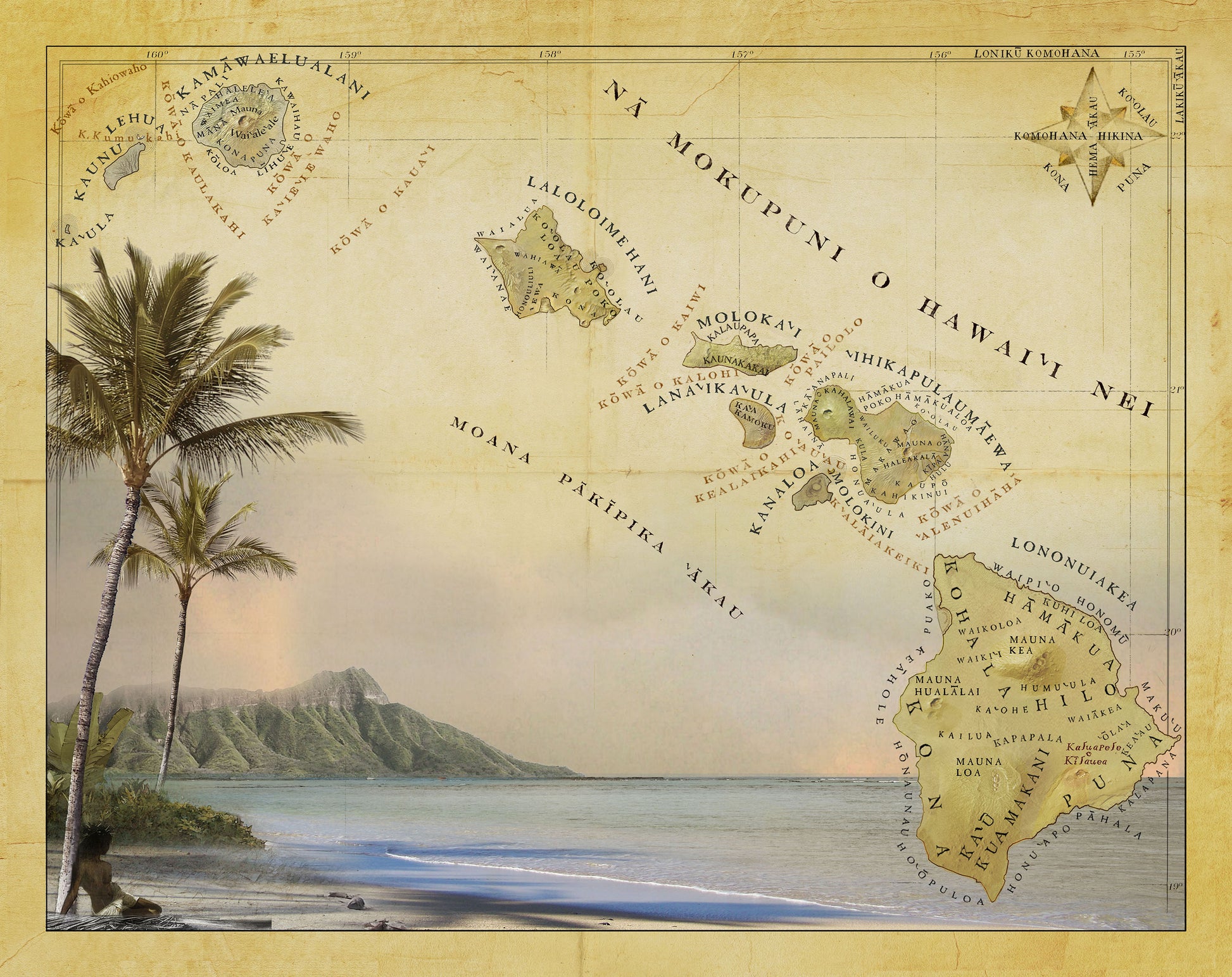 William Horak performed geological reconnaissance on Oahu, Kauai, Molokai and Hawaii. As a result, he was often in remote locations and in close association with kô ‘one‘i po‘e. Therefore, this provided him with the opportunity to explore both the physical and cultural aspects of the Islands. His images of Hawaii are influenced by the ho‘okahiko of the kanaka maoli and a way of life that has been consumed by the past. His interests in historical cartography, Hawaiian antiquity, and the natural history of the Islands are the foundation for his works.