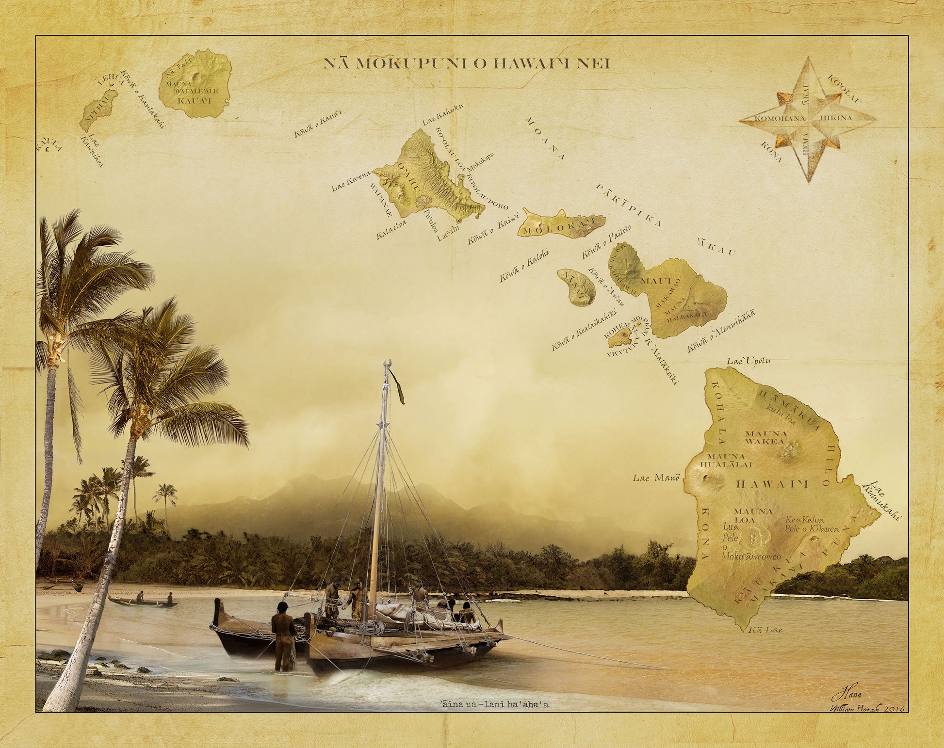 William Horak performed geological reconnaissance on Oahu, Kauai, Molokai and Hawaii. As a result, he was often in remote locations and in close association with kô ‘one‘i po‘e. Therefore, this provided him with the opportunity to explore both the physical and cultural aspects of the Islands. His images of Hawaii are influenced by the ho‘okahiko of the kanaka maoli and a way of life that has been consumed by the past. His interests in historical cartography, Hawaiian antiquity, and the natural history of the Islands are the foundation for his works.