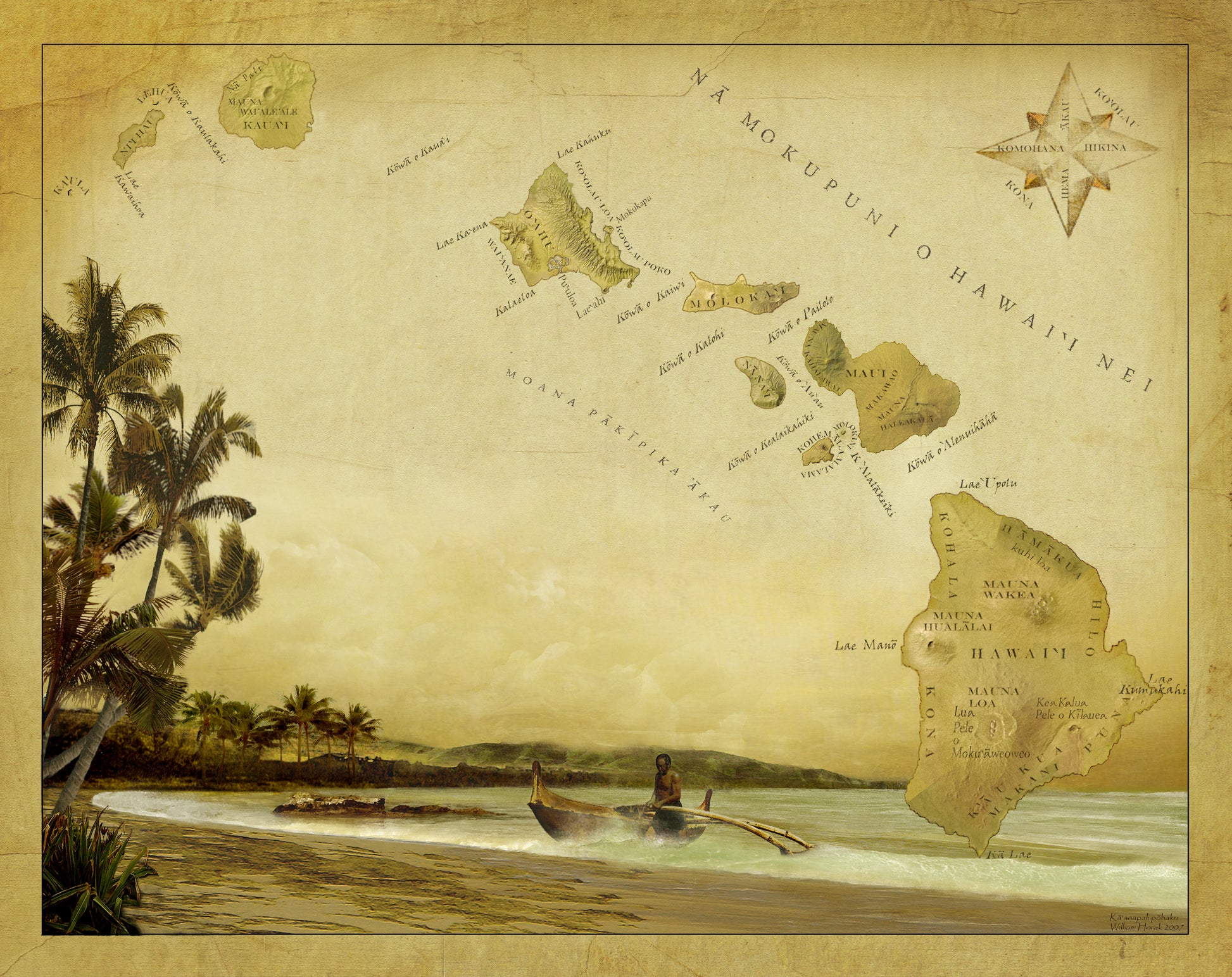 William Horak performed geological reconnaissance on Oahu, Kauai, Molokai and Hawaii. As a result, he was often in remote locations and in close association with kô ‘one‘i po‘e. Therefore, this provided him with the opportunity to explore both the physical and cultural aspects of the Islands. His images of Hawaii are influenced by the ho‘okahiko of the kanaka maoli and a way of life that has been consumed by the past. His interests in historical cartography, Hawaiian antiquity, and the natural history of the Islands are the foundation for his works.