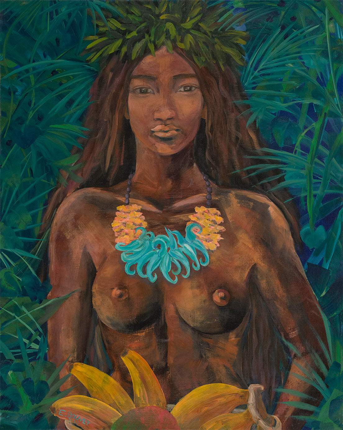 She spent most of her summers in San Diego California in her mother’s hometown. As a teenager, she fell in love with Maui, during her first trip in ‘96 to the valley Isle. Since then she has been coming back regularly for extended periods of time, painting Hawaiian landscapes, portraits and daily life . Of Special interest is her fascination with Hawaiian Women and capturing them in a natural beautiful manner.