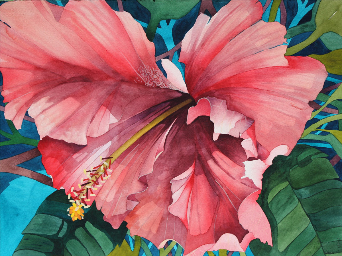Karin Novak-Neal's art career took off shortly after taking an early retirement from Continental Airlines and moving to Kona, Hawaii. She and her husband opened an art gallery across from the Banyan's beach in Kailua-Kona. Her watercolor style took a bolder, more dramatic step towards abstract after being introduced to the many colorful tropical flowers throughout Hawaii. Karin has solidified herself as a well recognized artist and instructor over her many decades in the art world of Hawaii.