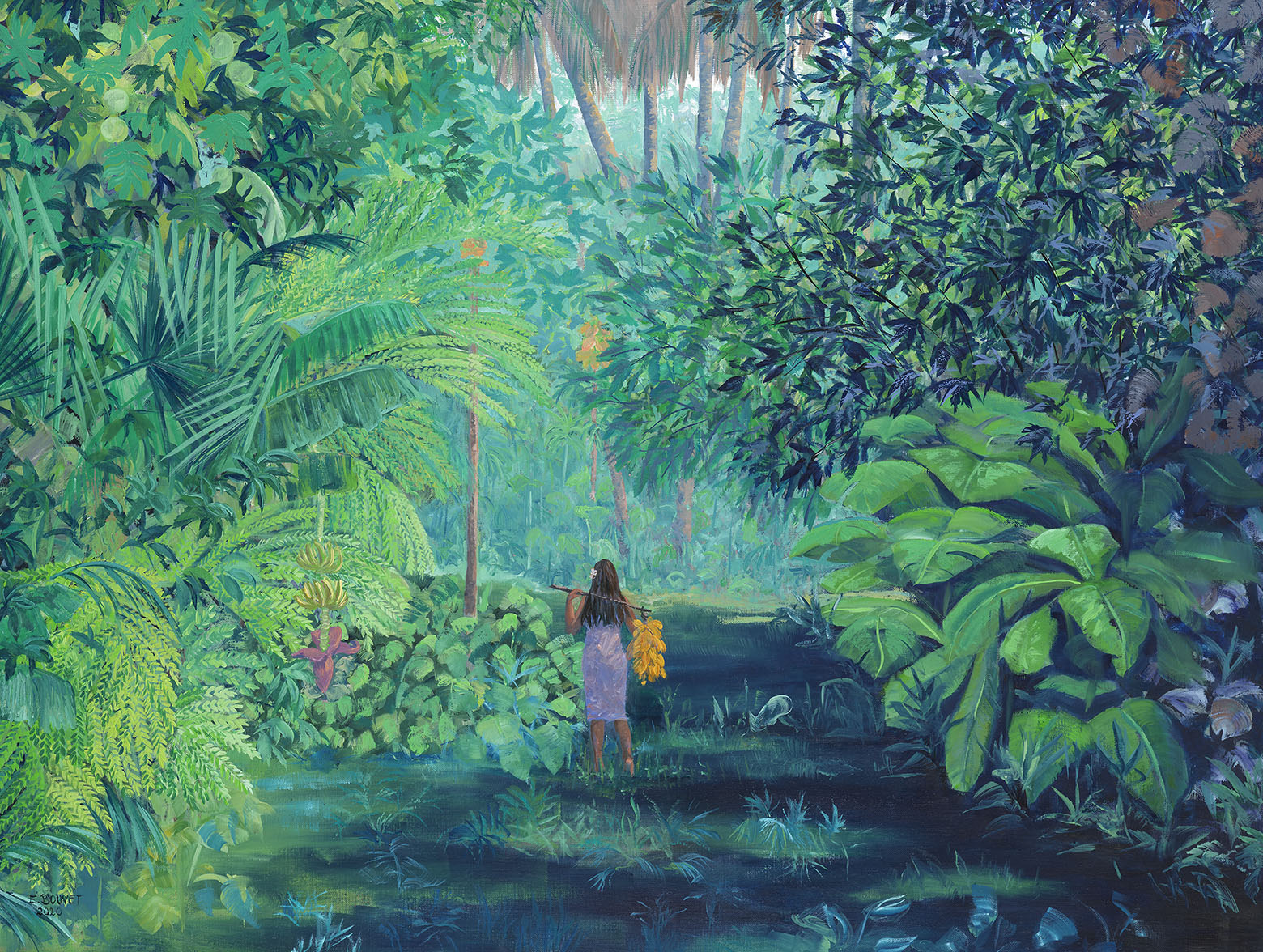 Emily Bouvet is a self taught artist even though she studied history of Art at La Sorbonne University in Paris. She grew up in the small town of Barbizon in France, famous for its pre-impressionist painters but she drew her early inspiration from her many travels, starting with Africa and South America from where she brought back travel logs that got published world wide.