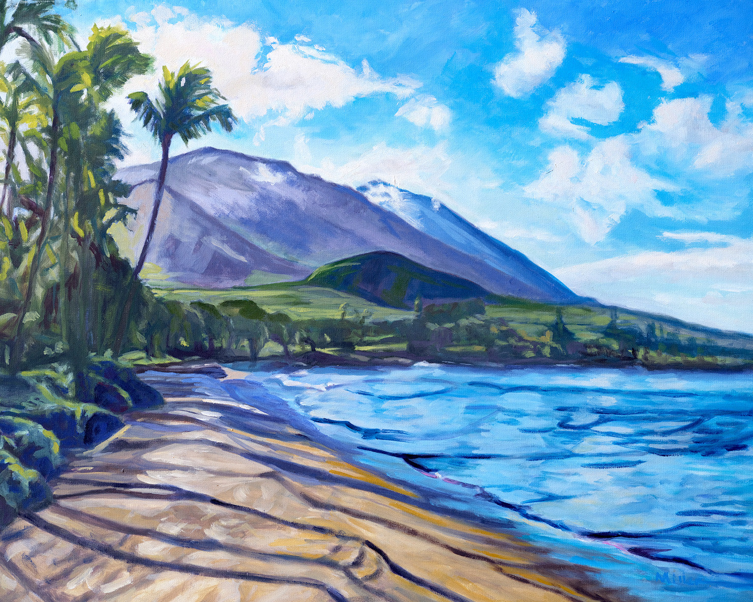 The poet Mary Oliver’s advice on instructions for living a life: “Pay attention. Be astonished. Tell about it.” This is what Laurie Miller believes she was called to do as an artist, to look for the magic in a sunset, a wave crashing, a surfer ready to find the perfect set; to fully experience and be wowed, and then to tell those stories through her artwork. The “why” in her paintings is to reconnect people to their dreams and cherished memories. Adept with oils and pastels she uses them to awaken the senses, and evoke the sentiments of how people want to feel or how they felt about being in a particular place, such as the beautiful island of Maui. What are the colors and textures they envision, what gives them that sense of awe and wonder? Her focus is on the simplicity of her surroundings to artistically express the essence of the moment.