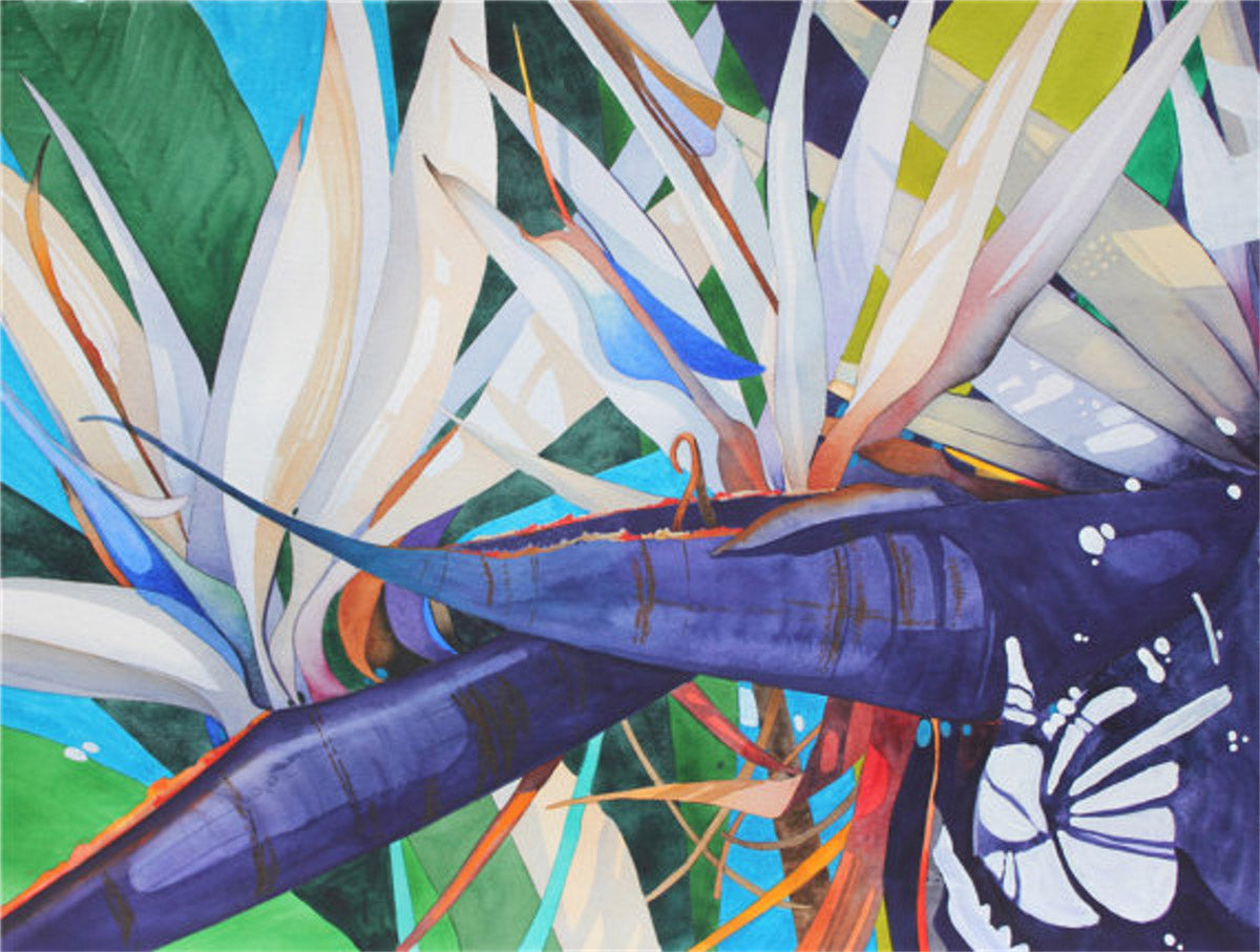 Karin Novak-Neal's art career took off shortly after taking an early retirement from Continental Airlines and moving to Kona, Hawaii. She and her husband opened an art gallery across from the Banyan's beach in Kailua-Kona. Her watercolor style took a bolder, more dramatic step towards abstract after being introduced to the many colorful tropical flowers throughout Hawaii. Karin has solidified herself as a well recognized artist and instructor over her many decades in the art world of Hawaii.
